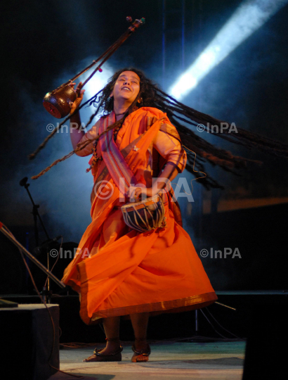 Parvathy Baul of West Bengal performs during DSC Jaipur literature festival in Jaipur, Rajasthan, India on 23/01/2012. She has inherited this style from Shri Sanatan Das Baul, who followed the style of legendary Baul Singer-Practitioner Shri NitaiKhapa. Her songs deal with universal love, humanity, the universe and self denial in life and practice. Photo Credit: Indian Photo Agency