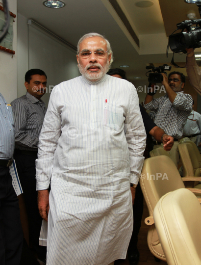 Chief Minister of Gujarat, Narendra Modi arrives for meeting with the Deputy Chairman, Planning Commission, Montek Singh Ahluwalia, to finalizing the plan for 2012-13 for the State, in New Delhi on June 01, 2012. Photo Credit: Indian Photo Agency