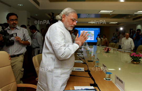 Chief Minister of Gujarat, Narendra Modi arrives for meeting with the Deputy Chairman, Planning Commission, Montek Singh Ahluwalia, to finalizing the plan for 2012-13 for the State, in New Delhi on June 01, 2012. Photo Credit: Indian Photo Agency