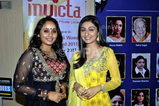 Bhojpuri actress Rani Chatterjee with Actress Namrata Thapa (tv serial yahan main ghar- ghar kheli) during Aadhi Aabadi Women Achievers Award in New Delhi on November 18, 2011. Photo Credit: Indian Photo Agency