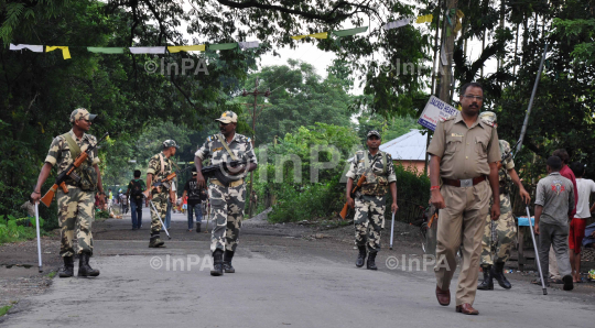 8th,August,2013-Siliguri-CRPF Jawan petroling at Salbari near Sukna on Thursday,during 6th day of Strike in Darjeeling Hills for Gorkhaland.photo Lila sah