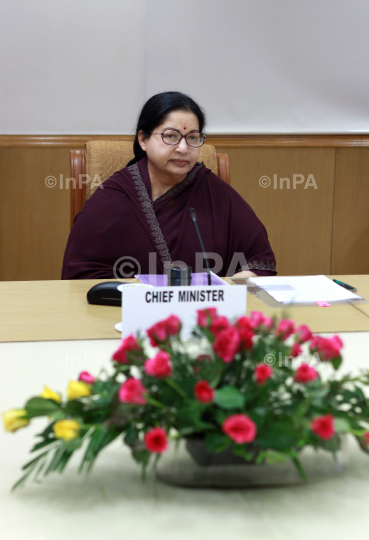 Chief Minister of Tamil Nadu J. Jayalalithaa during a meeting with Deputy Chairman Planning Commission Montek Singh Ahluwalia to finalize Annual Plan outlay for 2011-12 of the Tamil Nadu in New Delhi on Wednesday, 06/7/2011. Photo Credit: Indian Photo Agency