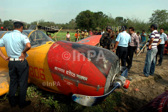 Indian Air Force officer inspecting landing Bangladesh Air Force academy Air craft at Raigram of Salar P.S in Murshidabad district of West Bengal on Thursday. photo by Sanjib Kumar Pramanik