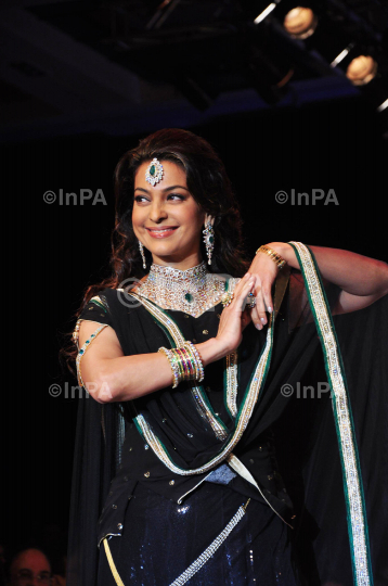 Bollywood actress Juhi Chawla walks the ramp displaying jewellery by Kays Jewels at the India International Jewellery Week 2012 (IIJW) in Mumbai on August 21, 2012. Photo Credit: Indian Photo Agency