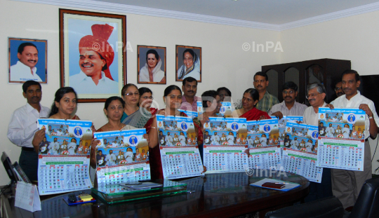 V Sunitha Laxma Reddy, Minister for IKP, Pensions, Self Help Groups WD&CW releasing 2012 calendar of WD, CW& DW Department at Secretariat in Hyderabad on 09/01/2012. Photo Credit: Indian Photo Agency