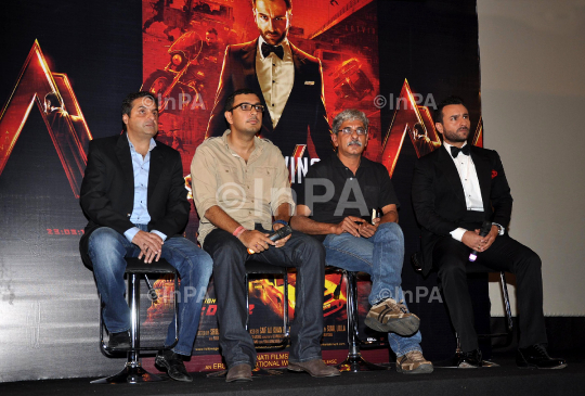 Bollywood Director Sriram Raghavan and Bollywood Actor Saif Ali Khan during the first look of the film 'Agent Vinod' in Mumbai on January 25, 2012. Photo Credit: Indian Photo Agency