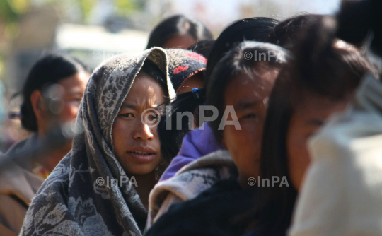 Women voters stand in queue to cast their vote during the 60th Manipur Assembly election at Shajouba, under Senapati district of the Indian eastern state of Manipur on Saturday, January 28, 2012. 279 candidates are on fray for the 60 seat Manipur assembly constituencies. At least 7 persons were killed during polling day violence in Manipur, according to local news agency. Photo by Caisii Mao/Indian Photo Agency