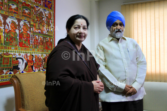 Chief Minister of Tamil Nadu, J Jayalalitha during a meeting with Deputy Chairman Planning Commission Montek Singh Ahluwalia for finalizing plan size for 2012-13 for the State in New Delhi on June 04, 2012. Photo Credit: Indian Photo Agency