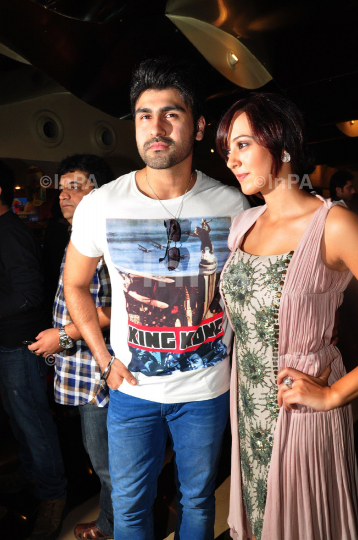Bollywood actor Arya Babbar with actress Hazel Keech during the music launch of film Maximum in Mumbai, India on June 18, 2012. Photo Credit: Indian Photo Agency