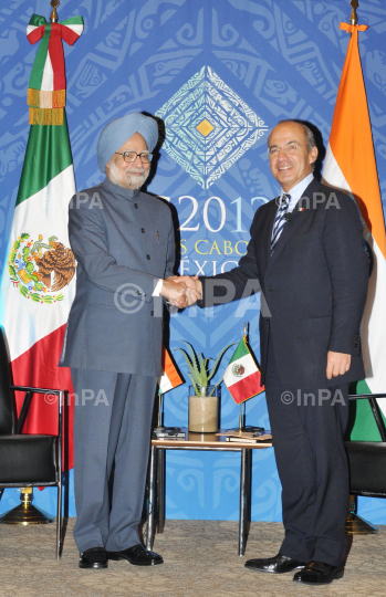 Indian Prime Minister, Dr Manmohan Singh at the bilateral meeting with the President of Mexico, Felipe Calderon on the sidelines of the G-20 Summit, at Los Cabos, Mexico on June 18, 2012. Photo Credit: Indian Photo Agency