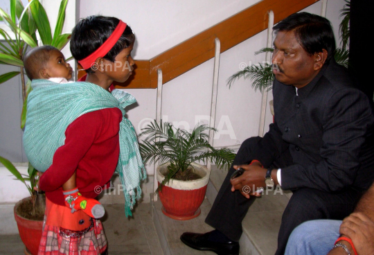 Jharkhand Chief Minister Arjun Munda meeting with Preeti Toppo at Ranchi in Jharkhand on 1st March 2012. Photo Credit: Indian Photo Agency