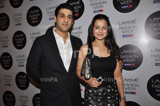 Bollywood actress Amisha Patel (Ameesha Patel) with Kanav Puri during the Lakme Fashion Week Summer/Resort 2012 in Mumbai, India, Friday, March 2, 2012. Photo Credit: Indian Photo Agency