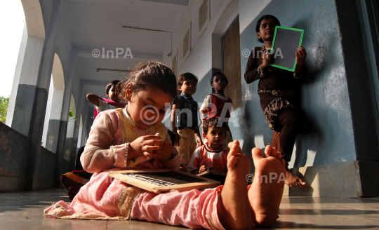 Orphan children reading at Raj kumari baai baal niketan campus on the children day at Jabalpur in Madhya Pradesh , India, 14/11/2011. Photo by Deepak Mishra/Indian Photo Agency