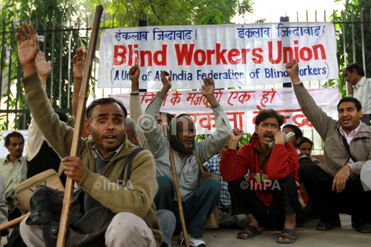 Activist of Blind Workers Union during a protest against retrenchment by the National Federation of the Blind in New Delhi, India, Monday, Nov. 28, 2011.Photo Credit: Indian Photo Agency