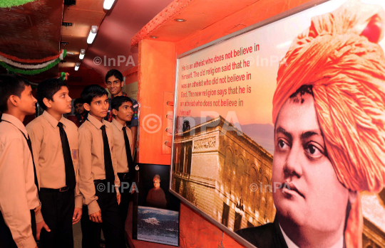 Vivek Express, the special train with two air-conditioned coaches exhibiting pictures and write-ups on the life and messages of Swami Vivekananda, at Mangalore Central railway station here on Friday, 05/08/2011. The train which was flagged off at Howrah Railway Station on January 12, in commemoration of the 150th birth anniversary of Swami Vivekananda halts in Mangalore for three days and open for public from 10 am to 6 pm. Photo by RK Bhat/Indian Photo Agency