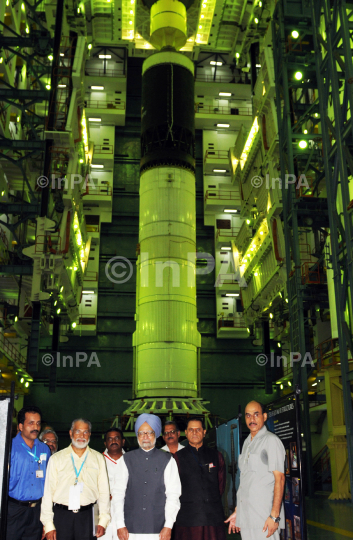 Indian Prime Minister, Dr Manmohan Singh visiting the GSLV MK III vehicle assembly facility at Sriharikota in Andhra Pradesh, India on September 08, 2012. Photo Credit: Indian Photo Agency