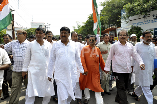 President Pranab Mukherjee's son Abhijit Mukherjee going to file his nomination with MP Adhir Ranjan Chowdhury and other leaders for by- election of Jangipur constituency at Berhampore in Murshidabad district, West Bengal, India on Sept 21, 2012. Photo by Sanjib Kumar Pramanik/Indian Photo Agency
