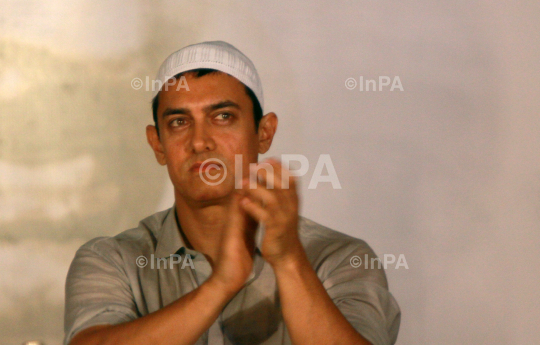 Bollywood actor Aamir Khan during the 12th day of anti-corruption activist Anna Hazare's fast against corruption at the venue of his fast in New Delhi, India, Saturday, Aug. 27, 2011. Photo Credit: Indian Photo Agency