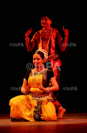 Dancers performing "Odissi Nritya" at a cultural event named "bharatiyam" at Pragjyotish ITA Machkhowa in Guwahati on saturday night 28th april 2012. Photo by Gitika Talukdar/Indian Photo Agency