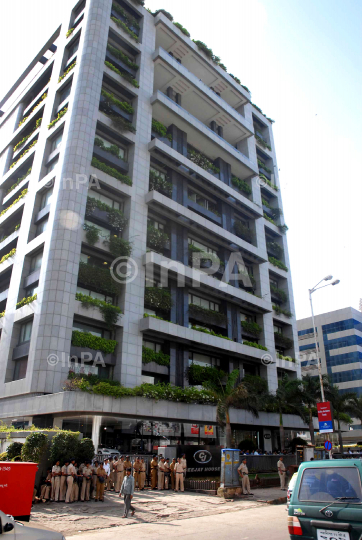 Ceejay House: Mumbai police keep vigil as Bharatiya Janata Party party workers protest against the alleged scam as per CAG report of Heavy Industry Minister Paful Patel in Air India & Indian Airlines at Praful Patel's personal/business office CJ House in Mumbai on August 23, 2012. Photo by Sachin Halde/Indian Photo Agency