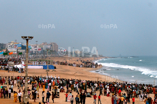 Indian navy band practices during rehearsal for Navy Day at Vishakhapatnam in Andhra Pradesh, India on 02/12/2011. Photos by Narendra Reddi/Indian Photo Agency