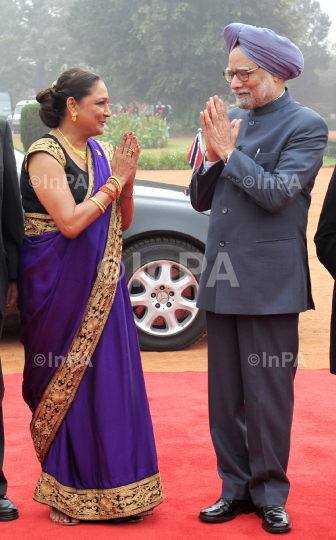 Indian Prime Minister, Dr Manmohan Singh meeting the Prime Minister of the Republic of Trinidad and Tobago, Kamla Persad-Bissessar, at her ceremonial reception, at Rashtrapati Bhavan, in New Delhi on January 06, 2012. Photo Credit: Indian Photo Agency
