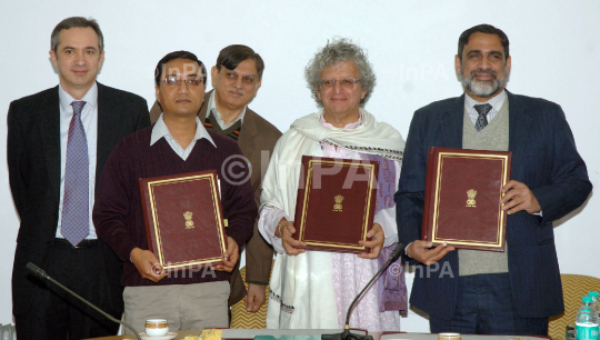 Joint Secretary, Department of Economic Affairs, Ministry of Finance, Venu Rajamony, the Project Director, DL Wankhar and the Country Director for India, World Bank, Roberto Zagha signed an US$ 130 Million Agreement to improve livelihoods for 300,000 village households in North Eastern State, in New Delhi on January 20, 2012. Photo Credit: Indian Photo Agency