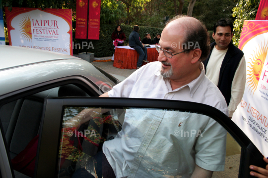 A file photo of Author Salman Rushdie, Indian-born British American novelist and essayist during DSC Jaipur literature festival in Jaipur, Rajasthan, India on 1901/2007. He has withdrawn from India's biggest literary festival, saying that he feared assassination after influential Muslim clerics protested against his participation.Photo Credit: Indian Photo Agency