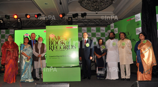 Pandit Ravi Shankar, playback singer Asha Bhosle, Shubha Mudgal, musical legend Dr. K J Yesudas, Teejan Bai, Dr. Lakshminarayana Subramaniam, Atul Singh, President and CEO, Coca-Cola India & South West Asia at the Unveiling of the 23rd edition of "The Limca Book of Records", in New Delhi, 31 Jan 2012. Photo Credit: Indian Photo Agency