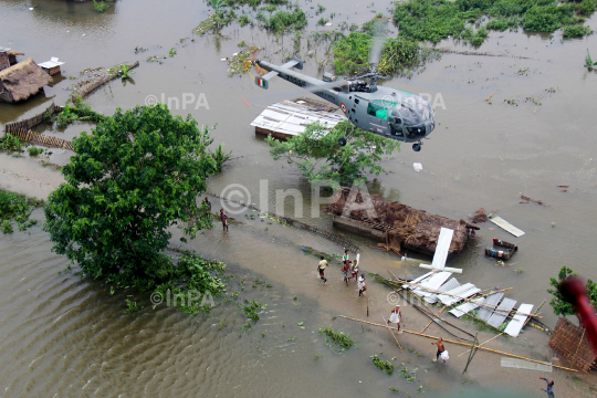 The IAF Helicopter on Relief and Rescue mission in the flood affected Assam Region, on July 01, 2012. Photo Credit: Indian Photo Agency