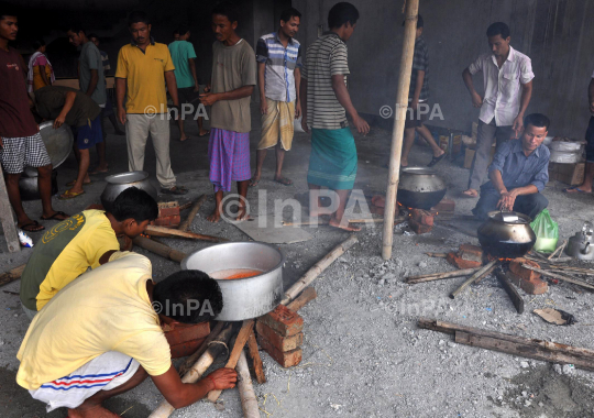 People cook food in a relief camp at Kokrajhar Commerce College during the ethnic violence at Kokrajhar on Wednesday 25th July 2012.A total of 40 persons were killed in ethnic violence in BTAD area. Photo by Dasarath Deka/Indian Photo Agency