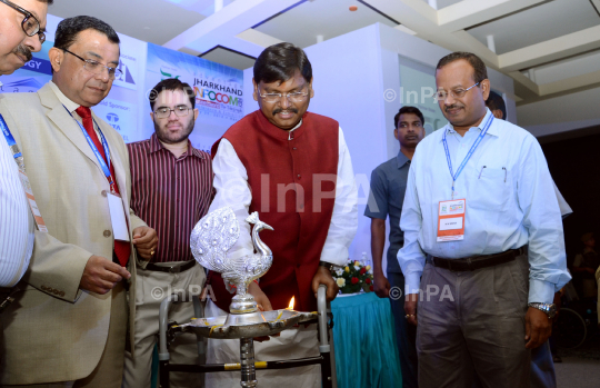 Jharkhand Chief Minister Arjun Munda along with Chief Secretary SK Choudhary and senior officials during the inaugural session of INFOCOM 2012 Conference and Exhibition in Ranchi on Wednesday, July 25, 2012. Photo Credit: Indian Photo Agency