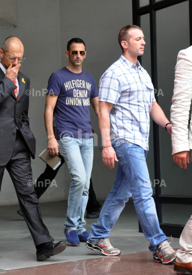 Italian Marines Massimiliano Latorre and Salvatore Girone coming out from the Ernakulam city police commissioner office by their daily appearance before the Ernakulam city police commissioner ,on the 4th day after bail at Kochi Wednesday 6th June 2012. The two marines are accused of fatally shooting two Indian fishermen from the Italian cargo vessel Enrica Lexie off southwest India. The marines were part of the cargo ship's security team, and India accuses them of mistaking the fishing boat for a pirate ship. Photo by AS Satheesh/Indian Photo Agency
