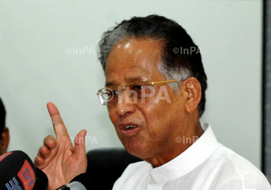 Tarun Gogoi chief minister of Assam addressing the media at Assam secretariat in Guwahati, Assam, India on Saturday 9th June 2012. Photo by Dasarath Deka/Indian Photo Agency