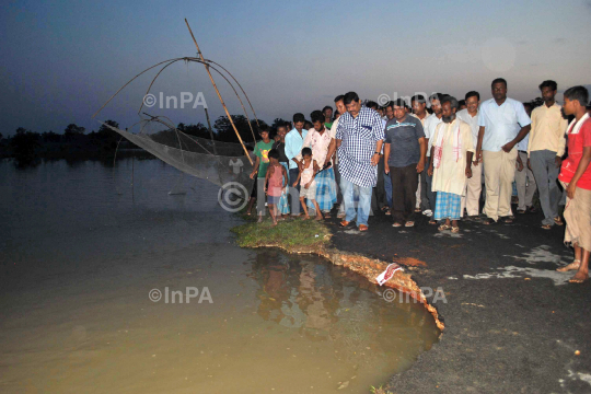 Forest and DRD minister of Assam, Rockybul Hussain visits the flood affected village of Bhurbandha in Nagaon, Assam on Friday, June 08, 2012. Photo by Anuwar Hazarika/Indian Photo Agency