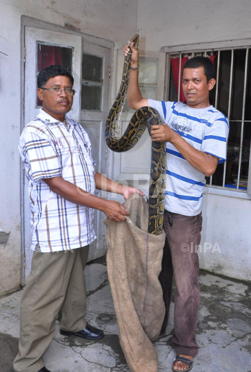 16-foot python recovered from a restaurant in Tezpur, Assam, India on June 22, 2012. Photo by Samir Kar/Indian Photo Agency