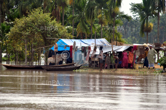 Flood affected people seen at Bogamukh in Ngaon district of Assam on Wednesday, June 27, 2012. Photo by Anuwar Hazraika/Indian Photo Agency