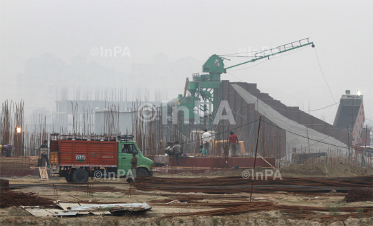 Noida Real Estate: Construction labour at Construction site in Noida, Uttar Pradesh, India. Last year, farmers' protest on land acquisitions prompted the Supreme Court to cancel the construction of residential flats in Noida Extension. Photo Credit: Indian Photo Agency