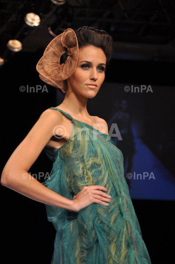 A model displays a creation by designer Farah and Firdos during the Lakme Fashion Week Summer/Resort 2012 in Mumbai, India, Sunday, March 4, 2012. Photo Credit: Indian Photo Agency