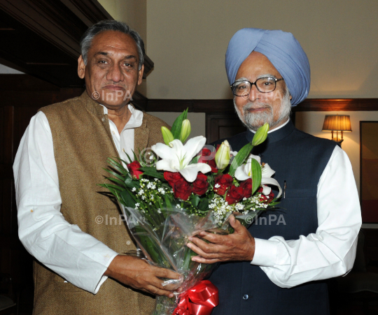 Chief Minister of Uttarakhand, Vijay Bahuguna meeting the Prime Minister, Dr. Manmohan Singh, in New Delhi on March 16, 2012. Photo Credit: Indian Photo Agency
