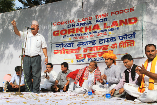 Gorkhas during a demonstration for their demand of a separate Gorkhaland organised by Gorkhaland Task Force(GTF), an alliance of political parties and social organisations at Jantar Mantar in New Delhi on March 19, 2012. Photo Credit: Indian Photo Agency