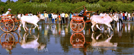 Bullock Cart race (HAKAKI) in Raigad, Diveagar, Maharashtra, India on March 21, 2012. Photo by Sachin Halde/Indian Photo Agency