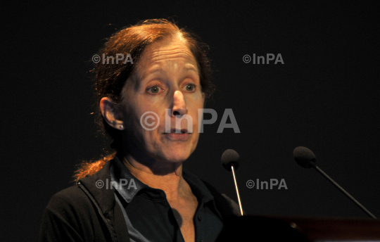 Marsha S Ivins, Former NASA astronaut interacts with students during a seminar on "55 days in Space: The story of an American Astronaut" at Guwahati in Assam, a northeastern state of India on Friday, May 4, 2012. It is her first visit to India. Photo by Dibyajyoti Rabha/Indian Photo Agency