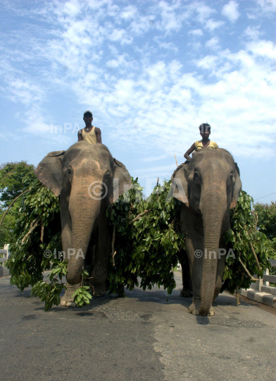 Mahouts with their elephants returning to their homes after collecting food from the forests at Kaziranga National Park, Assam on Saturday May 05, 2012 . Elephants at the national park are on rest after the end of the tourists season. The park was closed for visitors on April 30, 2012. Elephent Safari is one of the most attrective safari in Kaziranga during the Tourist Season. Photo by Luit Chaliha/Indian Photo Agency