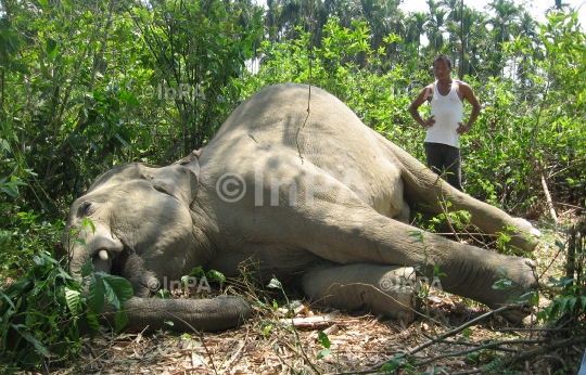 One elephant dead body found by forest official at Noyam Range, malbazar of Kalimpong, West Bengal on 05 May 2012. Photo by Roni Chowdhury/Indian Photo Agency