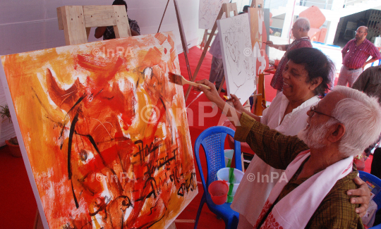 Peoples from various parts of life and veteran artist take a part in a painting workshop during the closing ceremony of commemoration of birth anniversary celebration of Kabiguru Rabindranath Tagore, in Guwahati on Tuesday, May 08, 2012. Photo by Ujjal /Indian Photo Agency