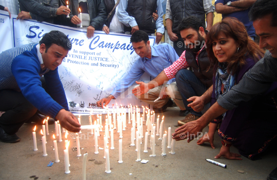 People from the Social Organizations of the Valley during a candle Light protest in Press Enclave as homage to the child victims of Mindless Violence in Srinagar, Jammu and Kashmir, India, on 11 May 2012. One persons was killed and many injured and affecting. Photos by Tariq Mir/Indian Photo Agency