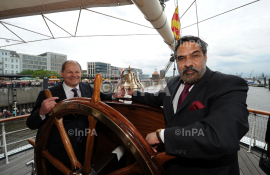 Union Minister for Commerce & Industry and Textiles, Anand Sharma along with the first Mayor of Hamburg Germany, Olaf Scholz launching the official opening ceremony of the Hamburg Port Festival in front of 1.5 million visitors on the German Ship ëRickmer Rickmersí, by ringing the bell in Hamburg, Germany on May 11, 2012. Photo Credit: Indian Photo Agency