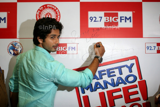 Shahid Kapoor, Bollywood actor signs to supports 92.7 BIG FM's latest campaign Safety Manao, Life Banao, at Andheri Staion in Mumbai on May 16, 2012. Photo Credit: Indian Photo Agency