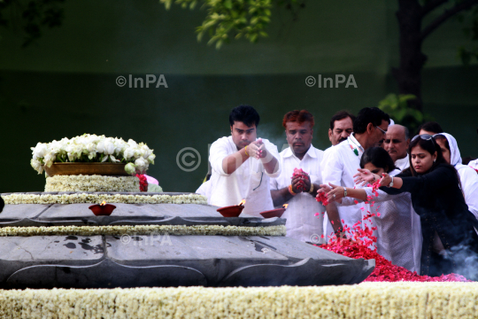 Congress party workers pay tributes at the memorial during death anniversary of former Prime Minister Rajiv Gandhi in New Delhi, India, on May 21, 2012. Photo Credit: Indian Photo Agency